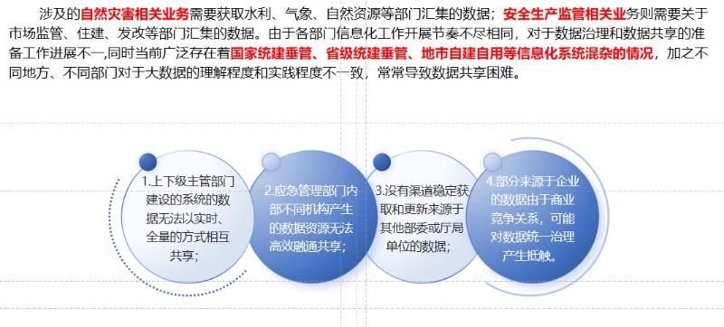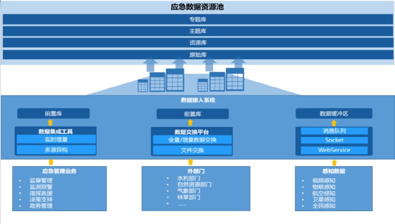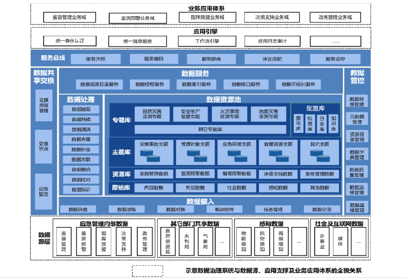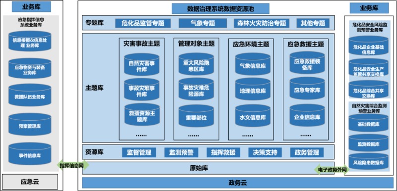 應急數據治理系統部署在電子政務外網中,是在統一信息資源規劃下,利用數據接入、數據處理、數據管控、數據服務、數據共享交換等功能,實現地方應急管理部門內、外部應急數據資源的匯聚、治理,形成統一的數據資源池,對內部業務系統和外部共享交換提供統一的數據目錄服務。